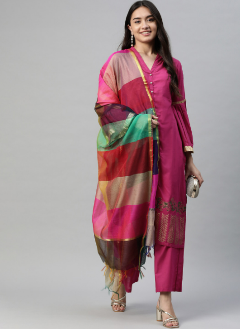 Magenta Regular Pure Cotton Kurta with Palazzos & With Dupatta -
