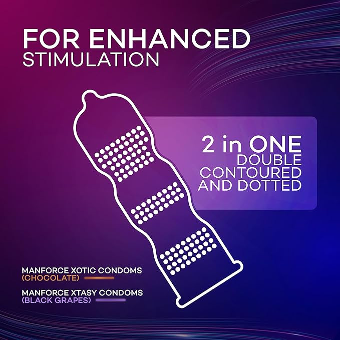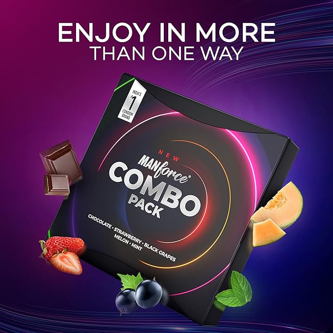 Manforce Combo, Lubricated Flavoured Condoms for Men | 40 pcs | Chocolate, Strawberry, Black Grapes, Melon & Mint | India’s No. 1* Condom Brand for Safe Sex