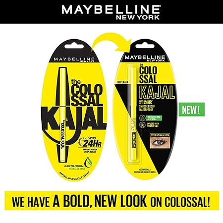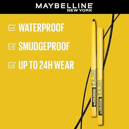 • Contents: 1x Maybelline New York Colossal Kajal, Intense Colour, Waterproof, Long lasting 24Hrs Stay, Shade: Black, 0.35g