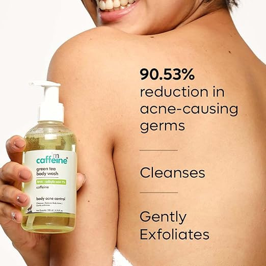 Reduces Body Acne - The Green Tea & 1% Salicylic Acid Body Wash not only cleanses the skin but also reduces 90.53% of acne-causing germs.
