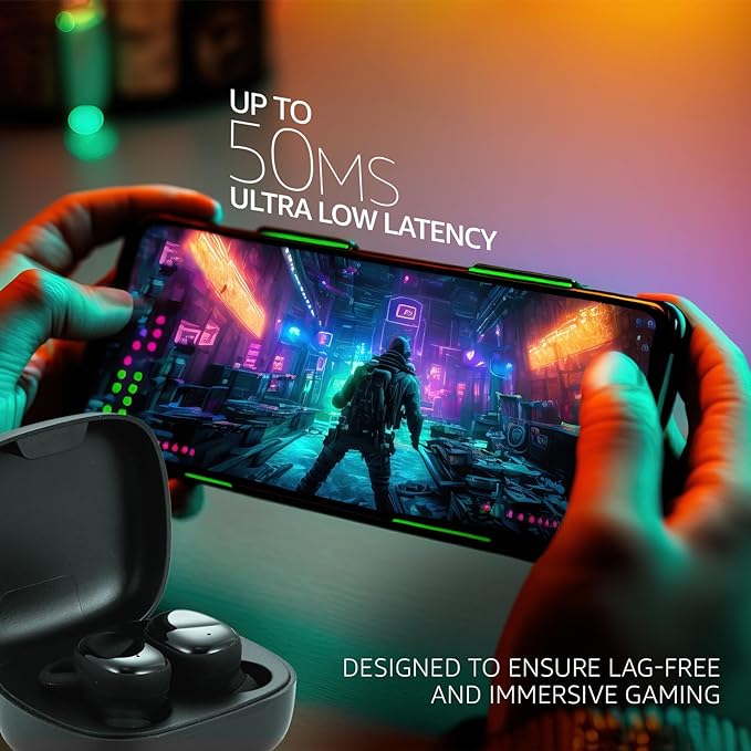 Low latency - 50 ms low latency, designed to ensure lag-free and immersive gaming; toggle between Gaming Mode and Music Mode by tapping the right earbud four times.