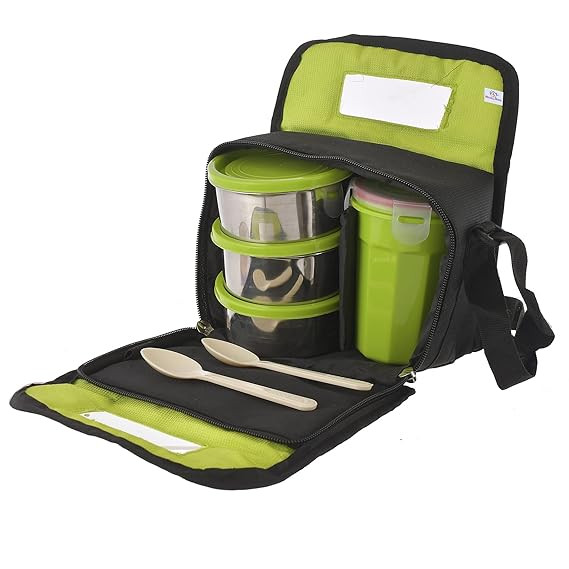 MILTON Arista Lunch Box (3 Microwave Safe Inner Steel Containers, 320 ml Each; 1 Stainless Steel Bottle, 475 ml) with Insulated Fabric Jacket, Grey