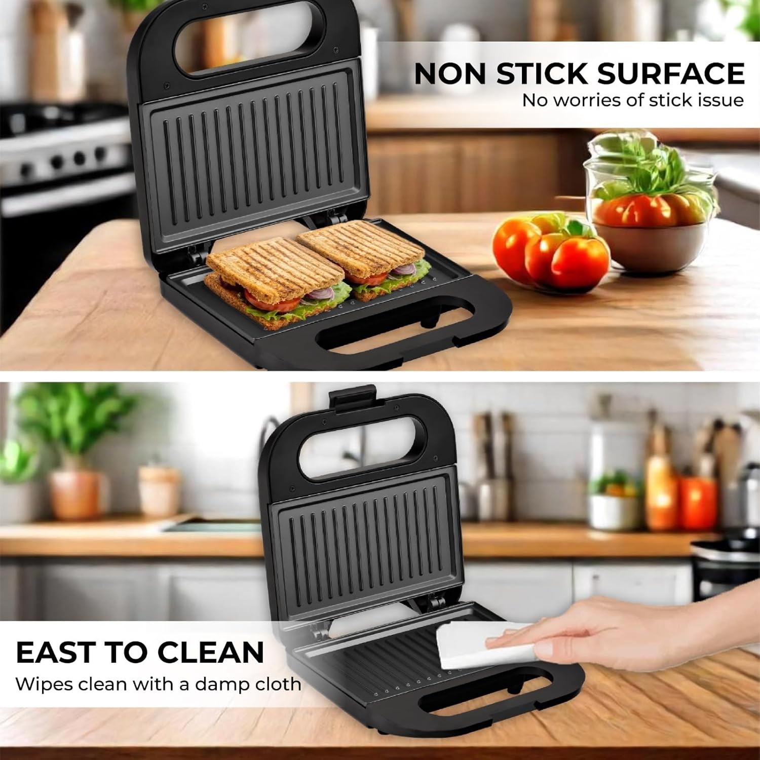 Milton Royal Pro Express 800W Toaster Griller Sandwich Maker | Top Stainless Steel Body | Non-Stick Fixed Grill Plates | Easy Clean | Power Indicators | 1 year Manufacturer Warranty - Black