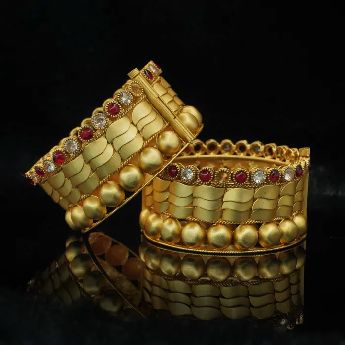 Modern Traditional Crafted Diamond beads gold plated bangle set