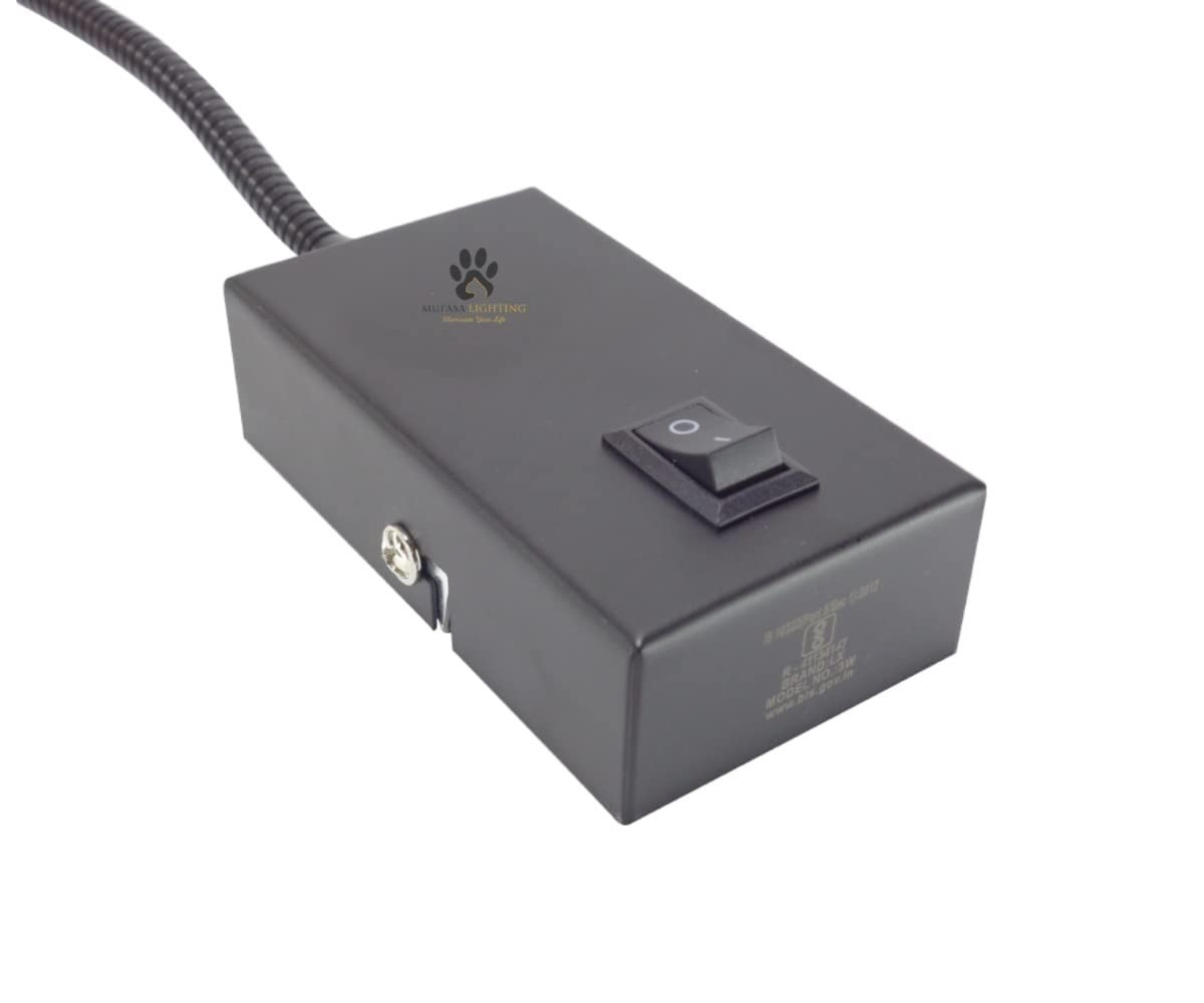 Mufasa Aluminium 3 Watts Black Finish Led Bedside Wall Light Surface Mounted Spotlight Reading Light Night Lamp Long Arm 28Cm Gooseneck (Pack of 1) (Warm White)