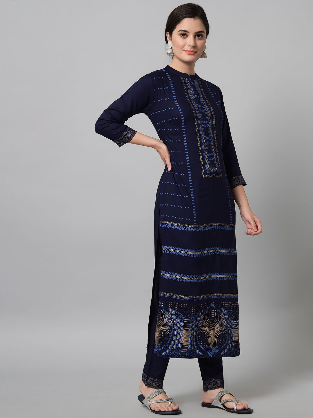 Navy blue printed kurta trouser set