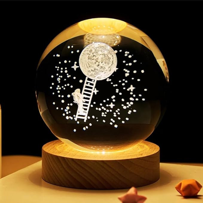 Mesmerizing Design: A glass ball adorned with a stunning depiction of the universe, this lamp captivates with its celestial allure.