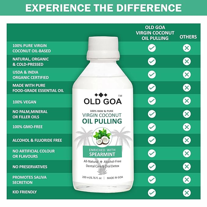 ORGANIC AND NATURAL: OldGoa Oil Pulling Mouthwash is a 100% Organic & natural product and derived from Non-GMO & freshly sourced coconuts so the oil that will be detoxifying your soft tissues starts free of toxins to give you a clean and healthy mouth.