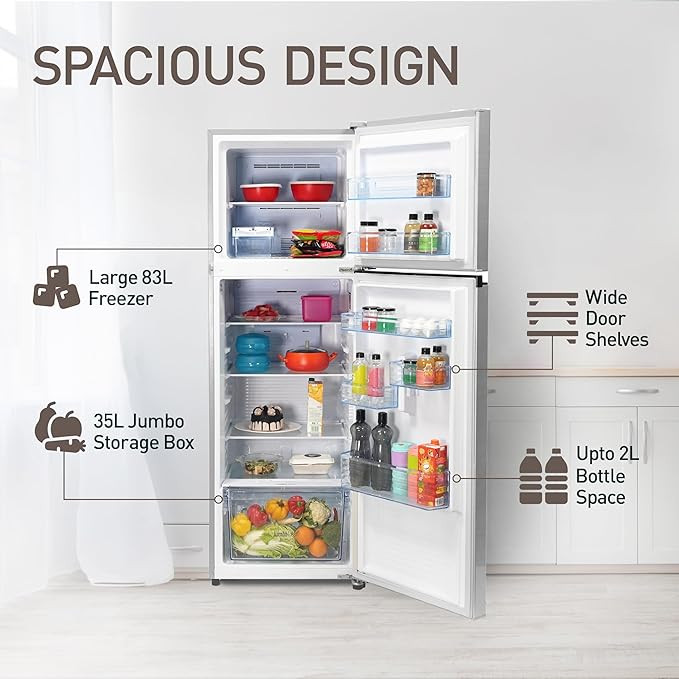 Panasonic 338 L 3 Star 6-Stage Smart Inverter Frost-Free Double Door Refrigerator (NR-TG351CUSN, Shining Silver, Jumbo Vegetable Basket, 2022 Model, Net Capacity 308L)