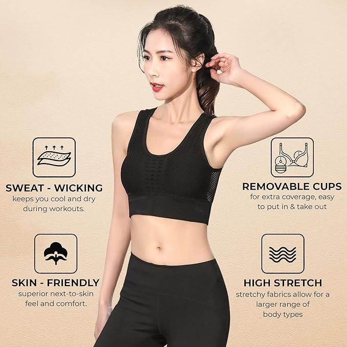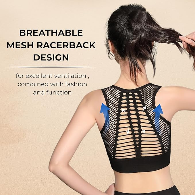 PLUMBURY Women's Padded Crop Top Sports Bra with Mesh Racerback for Gym/Yoga/Workout, Size M to 2XL