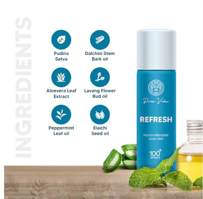 Pura Vida Refresh Ayurvedic Instant Mouth freshner Spray | Longlasting Freshness, Gumand Tooth Protection |Pocket Friendly | (Pack of 3)