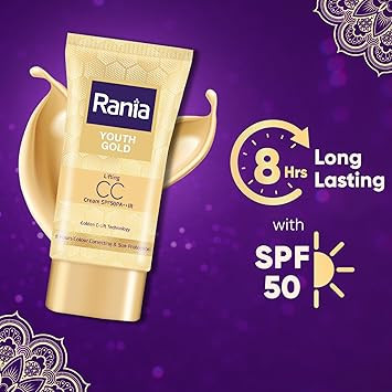 Rania CC Cream SPF50PA++IR with Vitamin C,24K Gold|Tinted moisturizer|Foundation & skincare|Lightweight|9-5 long lasting |Natural makeup look,25g