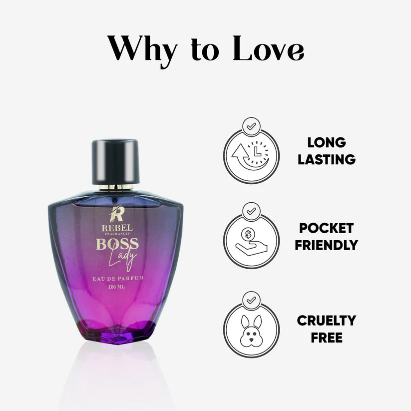 Unleash your inner confidence with REBEL – BOSS LADY EAU DE PERFUME, a captivating fragrance designed for the fearless and ambitious woman who knows what she wants. This bold scent opens with a burst of vibrant citrus and playful florals, seamlessly evolving into a rich heart of velvety rose and delicate jasmine. The base wraps you in warm notes of amber and musk, leaving a powerful and lasting impression wherever you go. Embrace your rebellious spirit and command attention with every spritz of this alluring perfume that embodies strength and elegance.