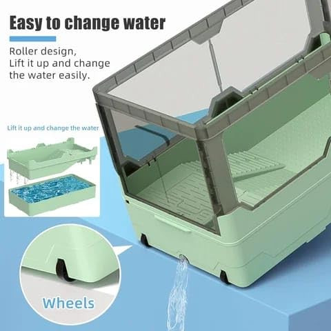rizopets Turtle Tank kit with Filter+Water Pump+Heat lamp, Wheels, Easy to Move, Imitate The Natural Flows, Suitable for Small Turtle Horned Frog Hermit (Medium) Size 44cm x 22 cm x 25 cm (Medium)