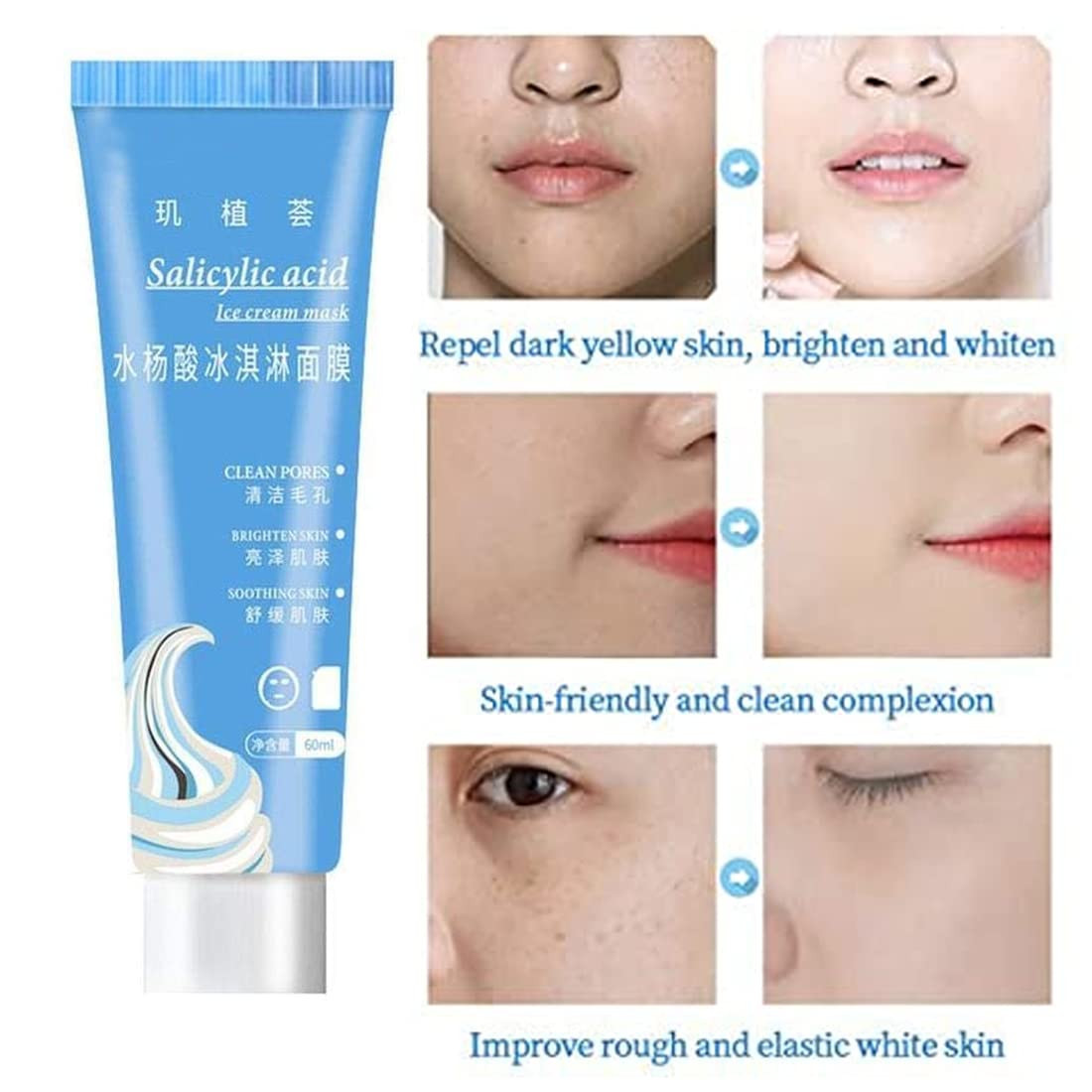 • Are you still suffering from acne problems? For example, acne marks, enlarged pores, shiny face and other skin problems, use this mask to make your skin soft like ice cream.