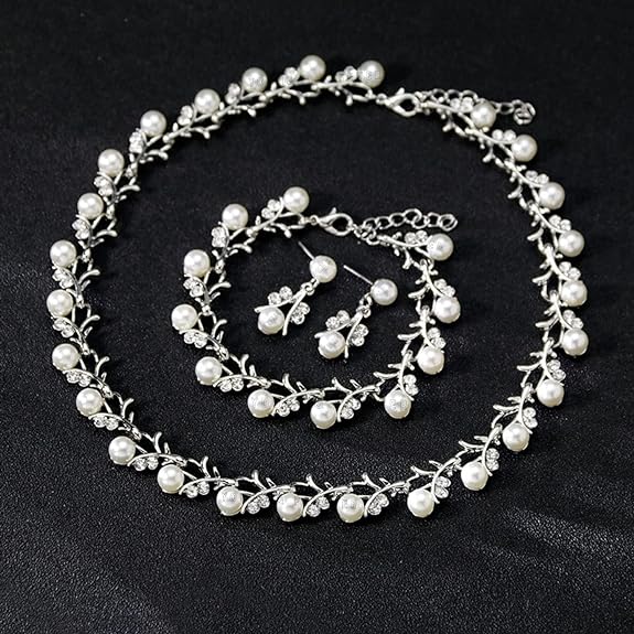 Shining Diva Fashion Latest Stylish 18k Gold Plated Combo Pearl Necklace Earrings Bracelet Jewellery Set for Women and Girls