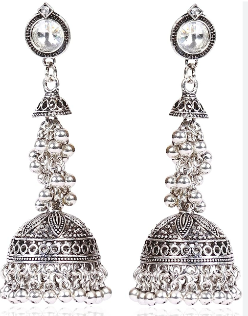 A Craftmanship Work with detailed yet precision design on this designer Jhumki Chandbali Silver Oxidized Earrings. For the Indian Beauty to Ethnic Earrings Lovers, beautifully goes on all Occasion, with any outfit.