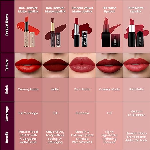 Swiss Beauty Non-Transfer Waterproof Lipstick with Jojoba Seed Oil | Matte Finish | Long-Lasting | Highly Pigmented | Shade- Bare, 3gm
