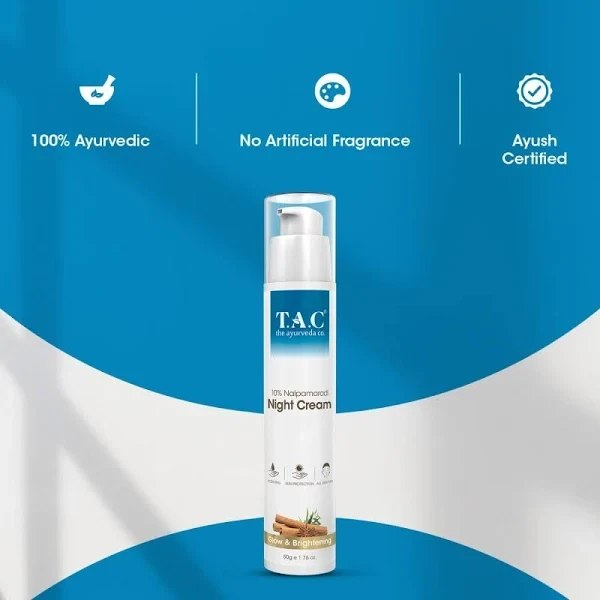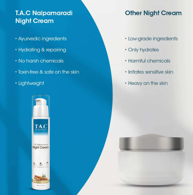 Unlock the secrets to radiant skin with TAC – 10% NALPAMARADI NIGHT CREAM. This luxurious night cream is formulated with a potent blend of traditional Ayurvedic ingredients, including NALPAMARADI, renowned for its skin-brightening and rejuvenating properties. Designed to work overnight, this cream nourishes, hydrates, and restores your skin while you sleep, promoting a youthful glow and reducing the appearance of dark spots and uneven skin tone. Experience the transformation as you awaken to a visibly softer, smoother, and revitalized complexion.