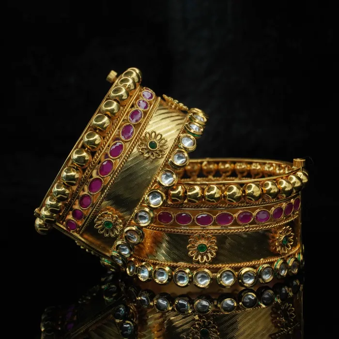 Traditional Design Kundan Studded Gold Plated Bangle -