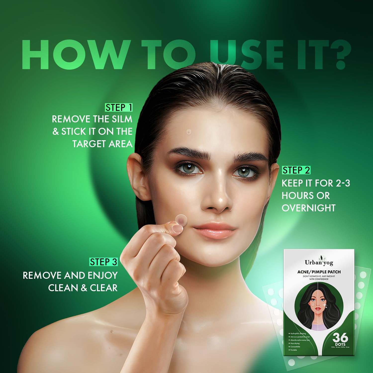 Introducing the URBAN YOG Acne/Pimple Patch, your new go-to solution for those pesky breakouts. Designed with precision and care, these transparent patches utilize hydrocolloid technology to effectively absorb excess oil and impurities while creating an optimal healing environment for your skin. Perfect for on-the-go use, you can wear them confidently during the day or overnight, promoting recovery without the worry of scarring. Say goodbye to blemishes and hello to clearer, healthier skin with URBAN YOG!