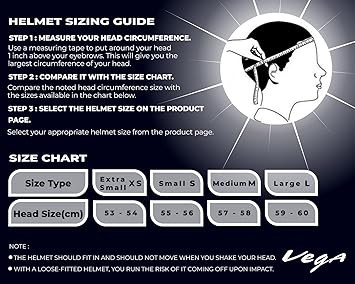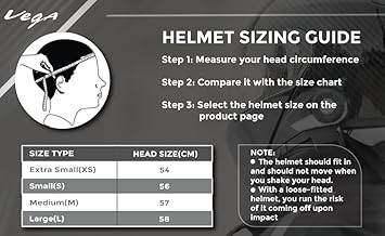 • The Helmet size would be: Extra Small (54 cm), Small (56 cm), Medium (57 cm), and Large (58 cm), ensuring a perfect fit for different head sizes.