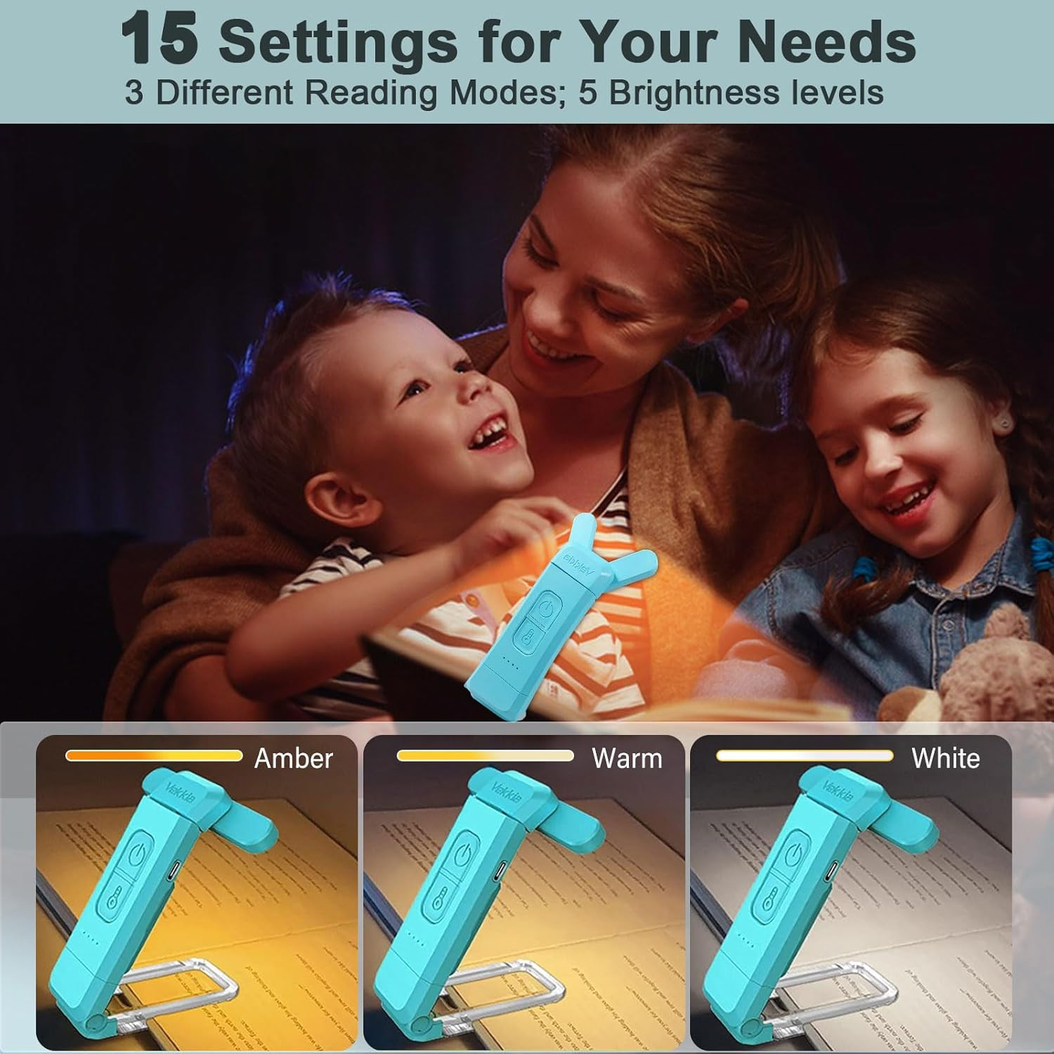 5 BRIGHTNESS DIMMABLE: Vekkia book light has 5 brightness levels and 3 colors available, adjust the brightness from 100% to 20% by long press button to suit different reading environment. Simple switch 3 color modes like amber, white or soft light. You can choose the most suitable bright level and color mode to better protect your eyes.