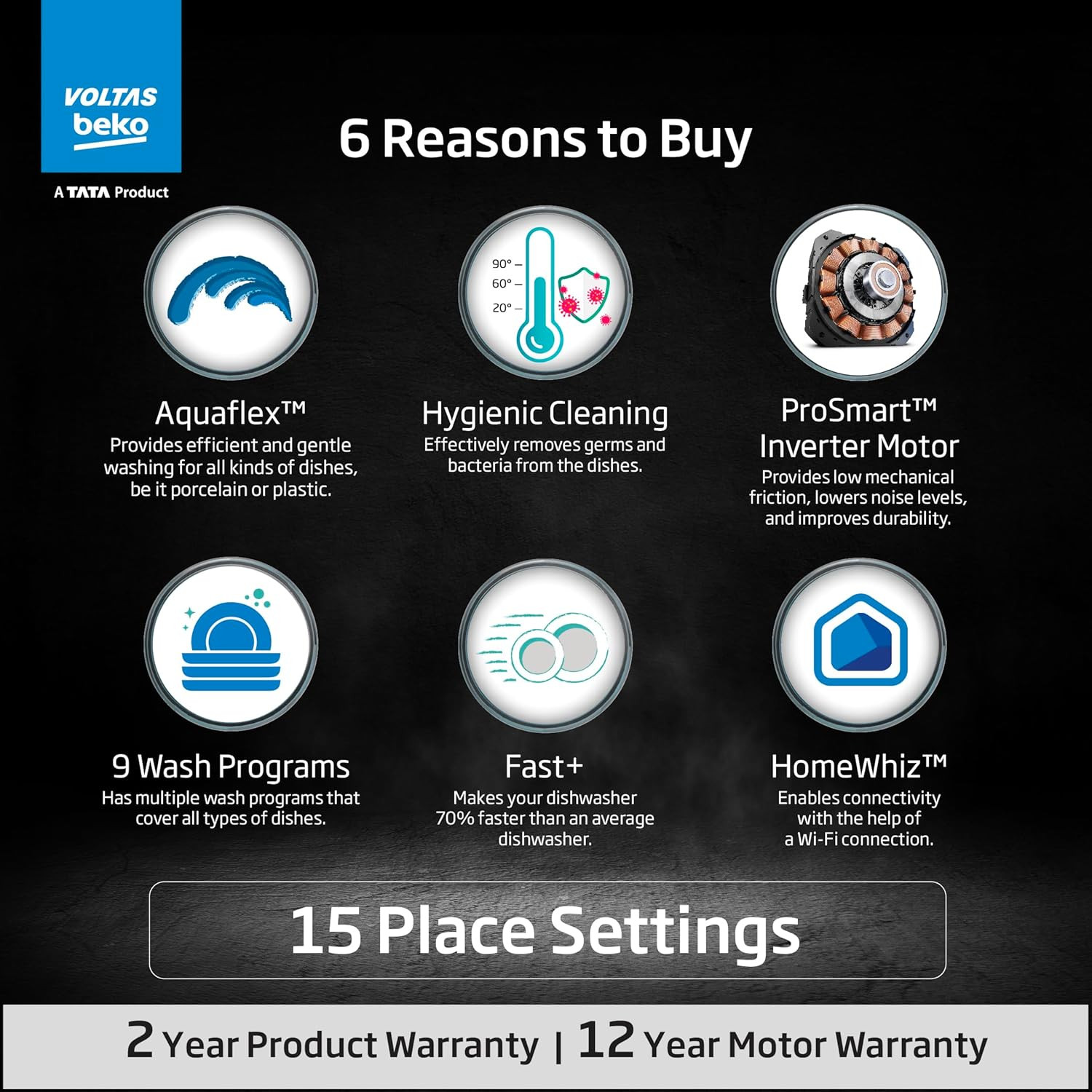 Voltas Beko 15 Place Settings Dishwasher (DF15A)