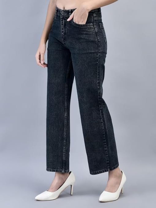 Women Baggy High Waist Wide Leg Denim Jeans | Regular Fit Jeans for Women | Jeans Pant for Women-BZJT-53-30 Black