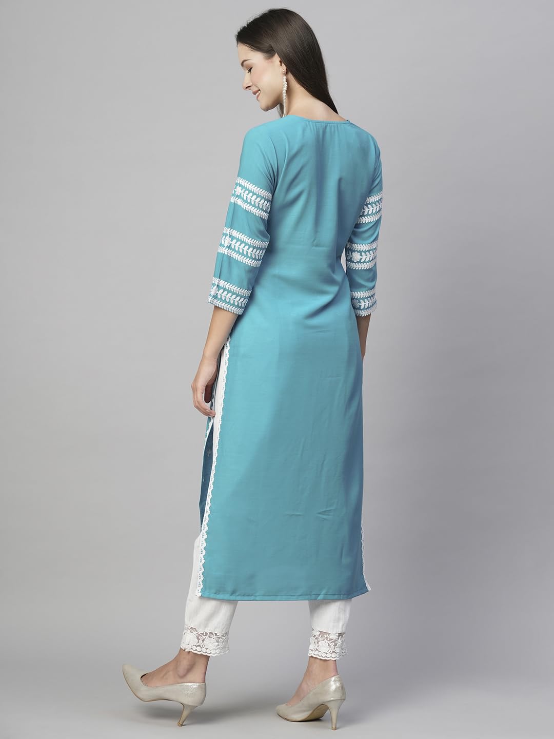 Women's Cotton Blend Chikankari Embroidered Straight Kurti