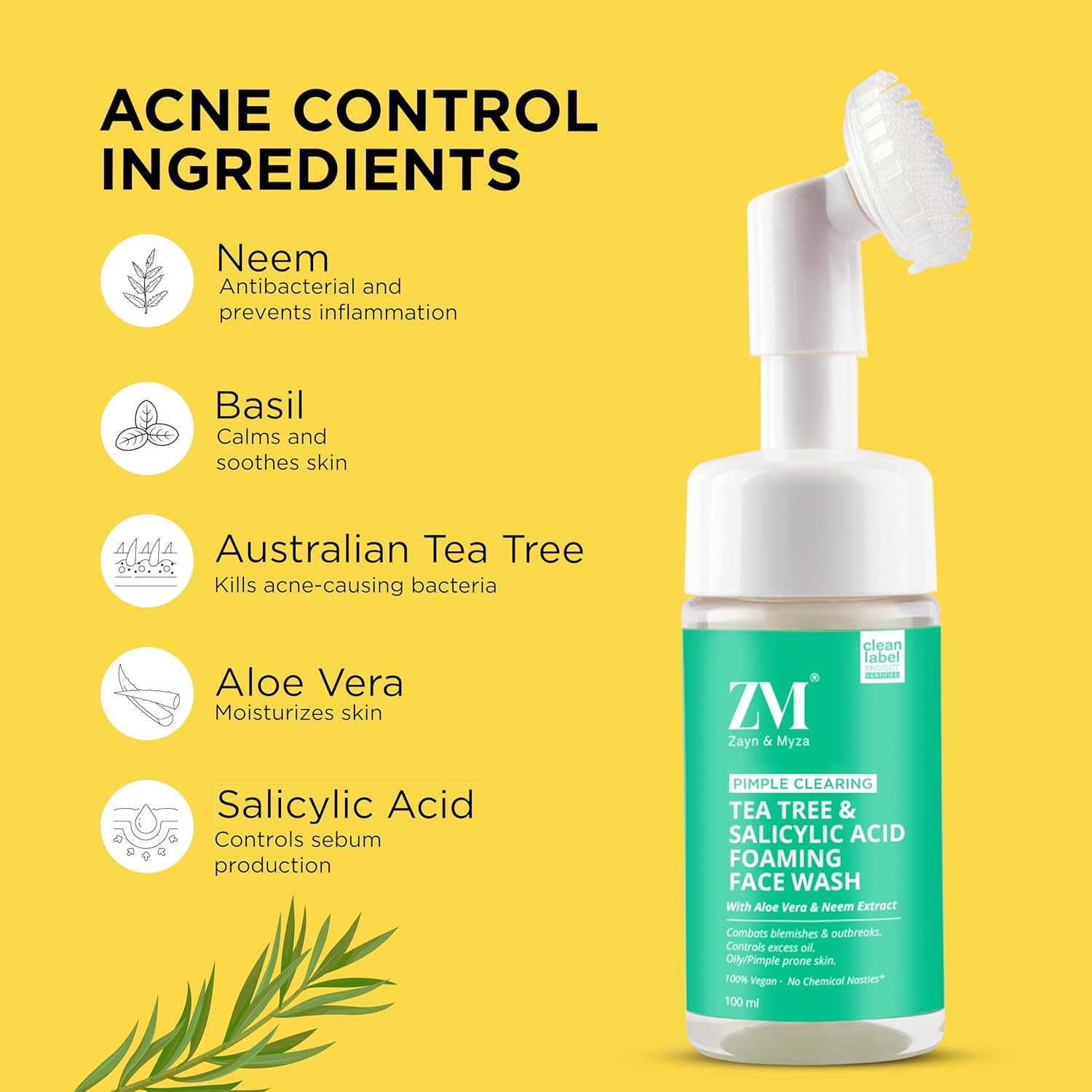 Introducing the ZM Tea Tree & Salicylic Acid Foaming Face Wash, your ultimate solution for achieving a clear, fresh complexion. This invigorating face wash is meticulously formulated to cleanse deeply while combating excess oil and impurities. Infused with the potent antibacterial properties of tea tree oil and the exfoliating power of salicylic acid, it targets blemishes and prevents future breakouts, leaving your skin feeling rejuvenated and smooth. Suitable for all skin types, this foaming wash not only purifies but also refreshes, making it an essential addition to your daily skincare routine.