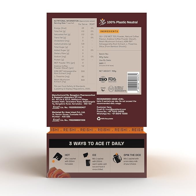 100% HAND PICKED ARABICA, SUPERCHARGED (DECAF, FOR THAT POST 4PM COFFEE): Unlock your highest everyday potential with Ace Blend. Our ethically sourced 100% Hand Picked Arabica beans from Chikmagalur deliver a delicious and sustainable coffee experience. Infused with functional mushroom extracts and carefully selected superfoods, our coffee is designed to keep you focused, energized, and relaxed. Join our community and make your everyday coffee more than just a beverage—it's a way of life.