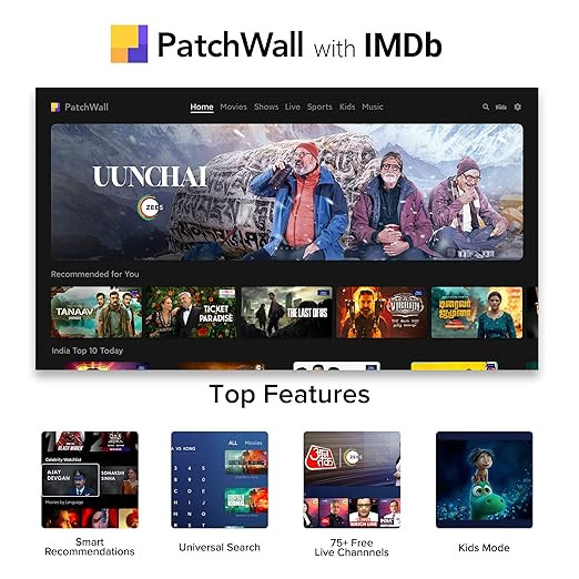 Supported Internet Services Netflix, Amazon Prime Video, Live TV, PatchWall, Play Store, YouTube, User Manual, TV Manager, Gallery, YouTube Music, PatchWall+, Miracast, Media player, Disney+ HotstarNetflix, Amazon Prime Video, Live TV, PatchWall, Play Store, YouTube, User Manual, TV Manager, Gallery, YouTube Music, PatchWall+, Miracast, Media player, Disney+ Hotstar