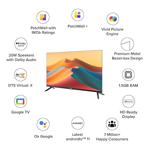 Special Feature Hey Google | Google TV | HDR 10 | Supported Applications : PatchWall, PatchWall+, Netflix, Amazon Prime Video, Disney+ Hotstar, Miracast, Media player, Gallery, TV Manager, User Manual, Live TV, YouTube, YouTube Music, Play StoreHey Google | Google TV | HDR 10 | Supported Applications : PatchWall, PatchWall+, Netflix, Amazon Prime Video, Disney+ Hotstar, Miracast, Media player, Gallery, TV Manager, User Manual, Live TV, YouTube, YouTube Mus… See more