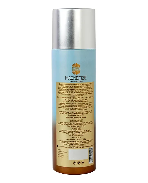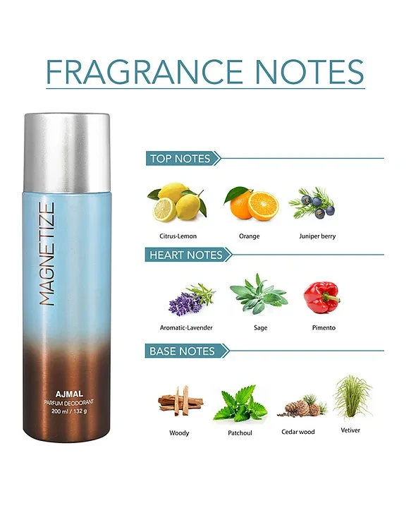 Introducing the AJMAL Magnetize Deodorant, your go-to solution for all-day freshness and confidence. This captivating fragrance is designed for the discerning individual who values elegance and style. With its enchanting blend of citrus and floral notes, AJMAL Magnetize leaves a lasting impression wherever you go. Ideal for both daily wear and special occasions, it ensures you stay invigorated and uplifted throughout the day. Experience the magic of a scent that not only enhances your essence but also boosts your charisma.