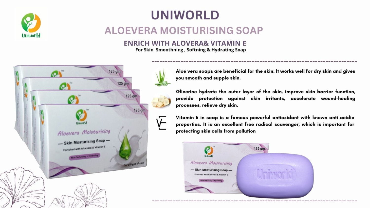 Introducing "UNIWORLD" Aloe Vera Moisturizing Soap, a beneficial skincare solution for your skin.
