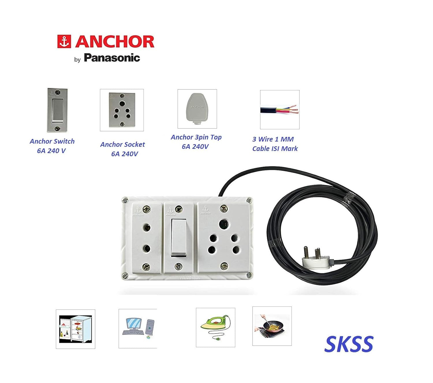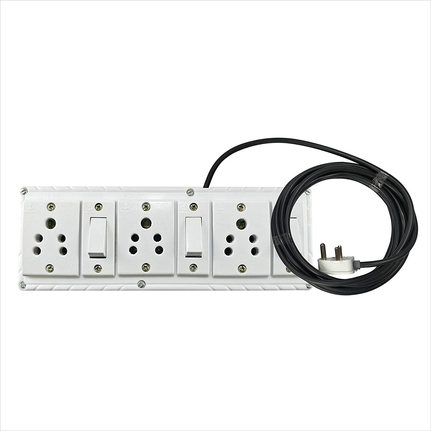 Anchor Extension Board Multi Outlet Electrical Switch Board with 3 Anchor Sockets (5 Amp) and 3 Anchor Switches (5Amp) 1.5 Mtr Long Cable with Anchor Top, Power Strip Surge Protector