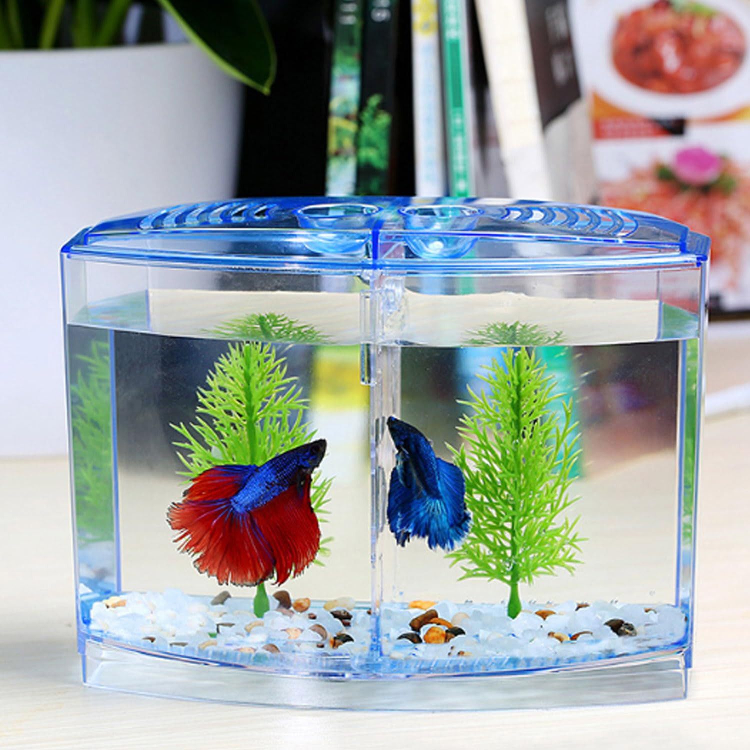 Animaux Betta Fish Tank with 2 compartments | Fighter Fish Tank with partition | Suitable only for Small Fishes