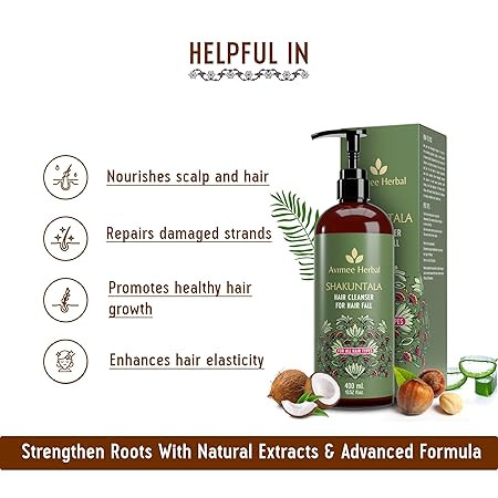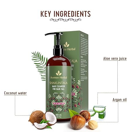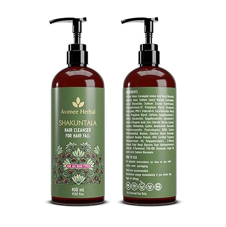 Avimee Herbal Shakuntala Hair Fall Control Hair Cleanser | With Keratin Protein & Nansyl | For Strong and Shiny Hair | Sulphate & Paraben Free For Men and Women | 400 mL