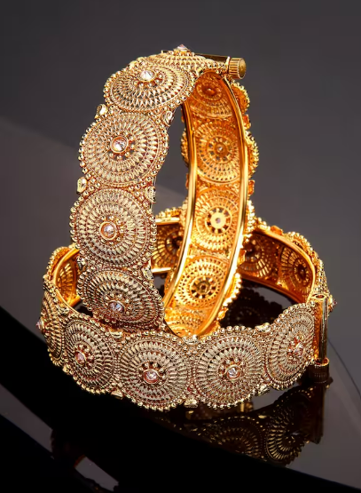 A bangle is a rigid, loose-fitting bracelet that you can wear on your wrist alone or in combination with other bangles. The poetic symbolizations of Indian literature glorify bangles and brand them as the pinnacle of feminine elegance. Traditionally breaking of the bridal glass or lac bangles is considered inauspicious. Bangles are round, stiff and designed to hang loosely around the wrist.