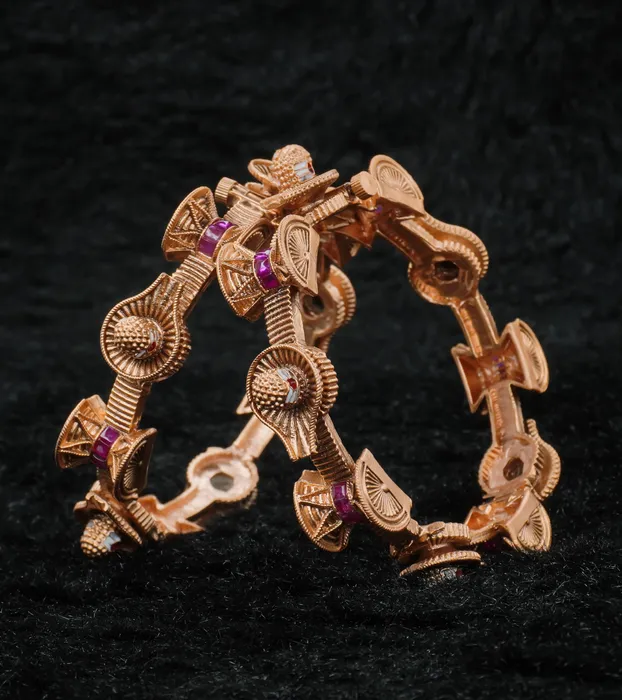 Beautiful shivling design gold plated copper bangles set