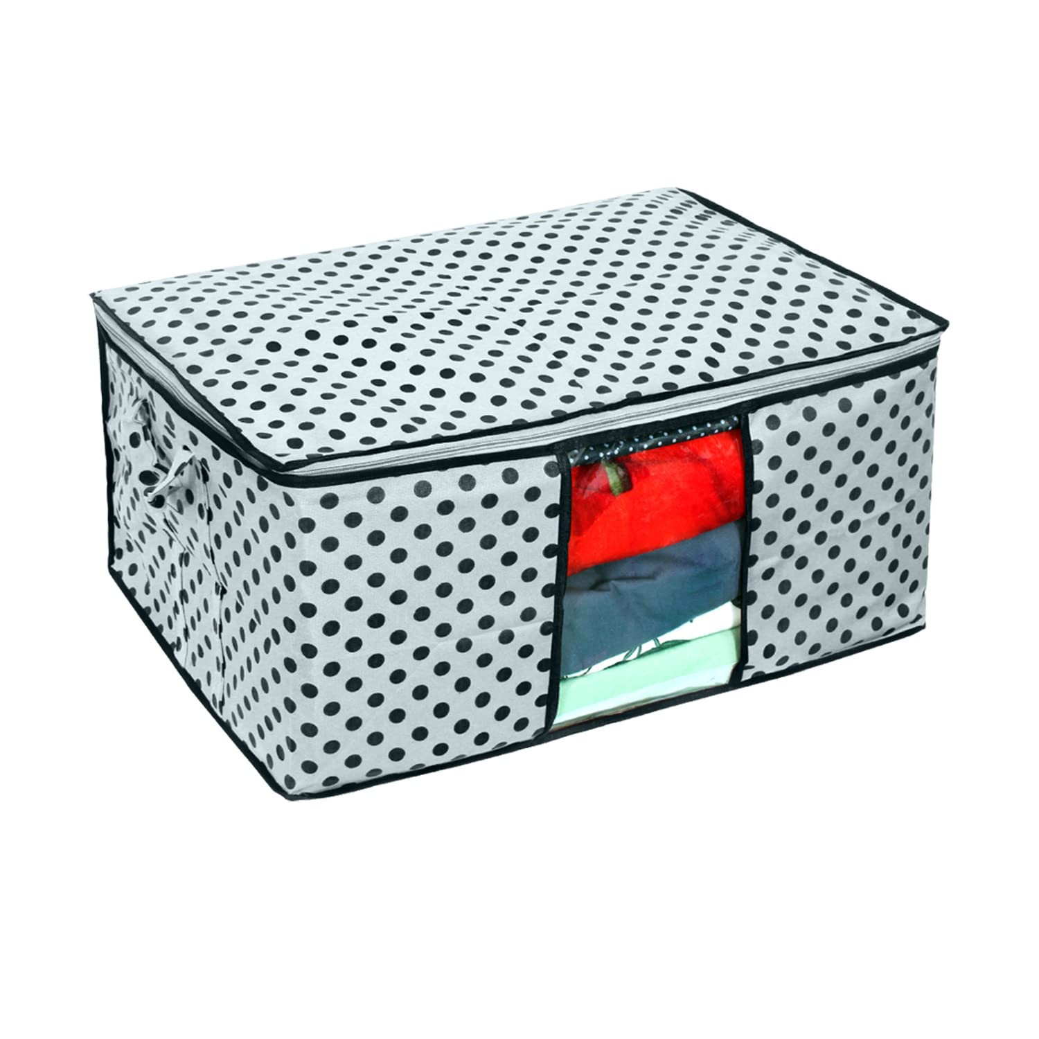 BEST Underbed Dotted Blanket Storage Organizer Bag with Side Handles - 98x40x19 cm, Set of 3 Pieces