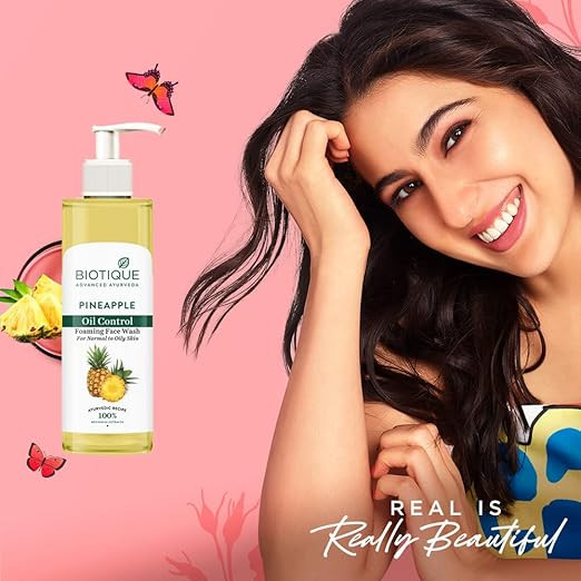 Key ingredients: Infused with pineapple goodness, this biotique face wash diminishes sunspots, lightens dark circles, and wild turmeric gives your skin a youthful glow. In the formula, neem leaves fight signs of ageing and even out skin tone.