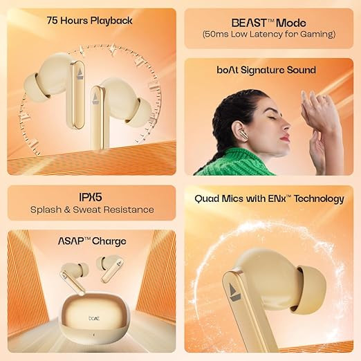 Gaming BEAST Mode: Adrenaline-raising gaming sessions with your squad are a tap away with BEAST mode’s 50 ms low latency. By taking out lag from the mix, these earbuds match your moves in the gaming arena with the audio for seamless wins each time.