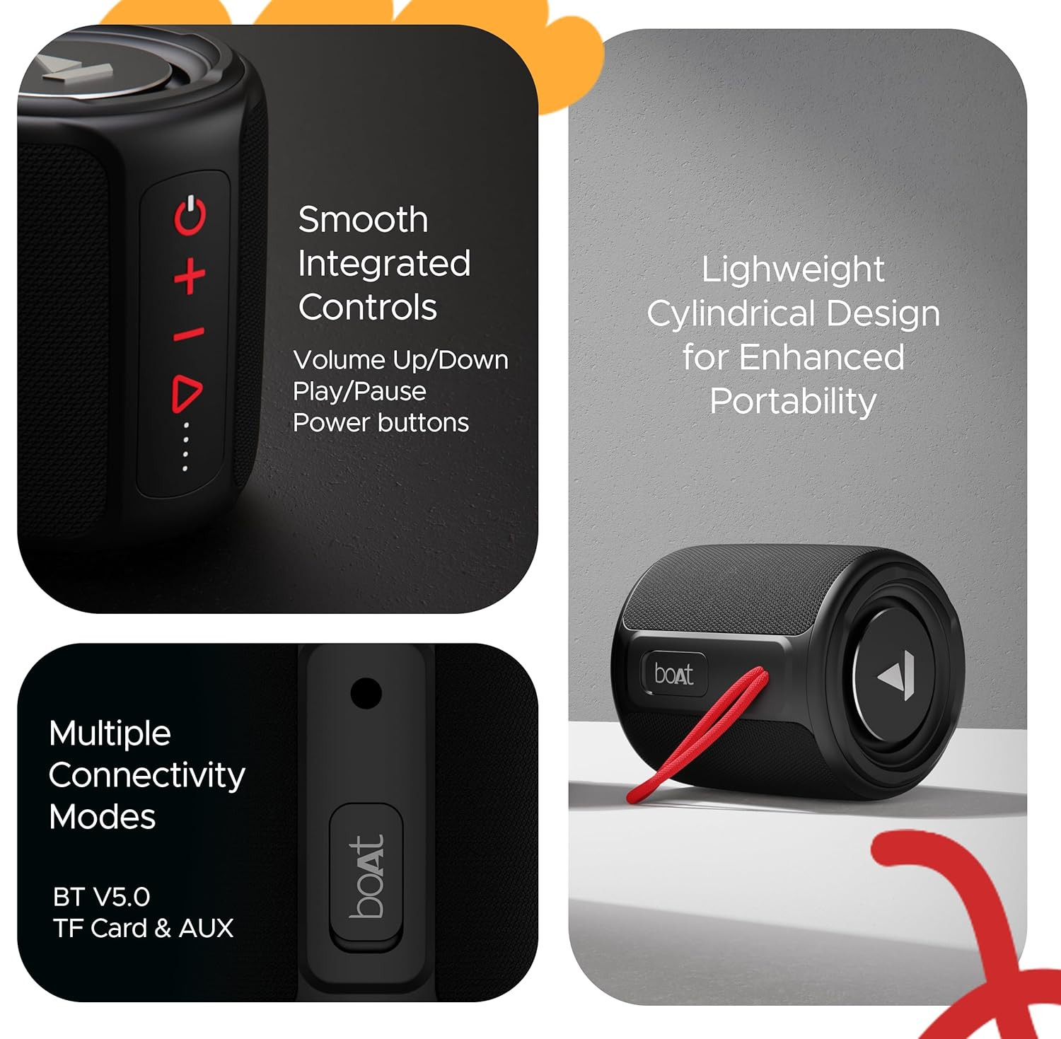 boAt Stone 352 Bluetooth Speaker with 10W RMS Stereo Sound, IPX7 Water Resistance, TWS Feature, Up to 12H Total Playtime, Multi-Compatibility Modes and Type-C Charging(Raging Black)
