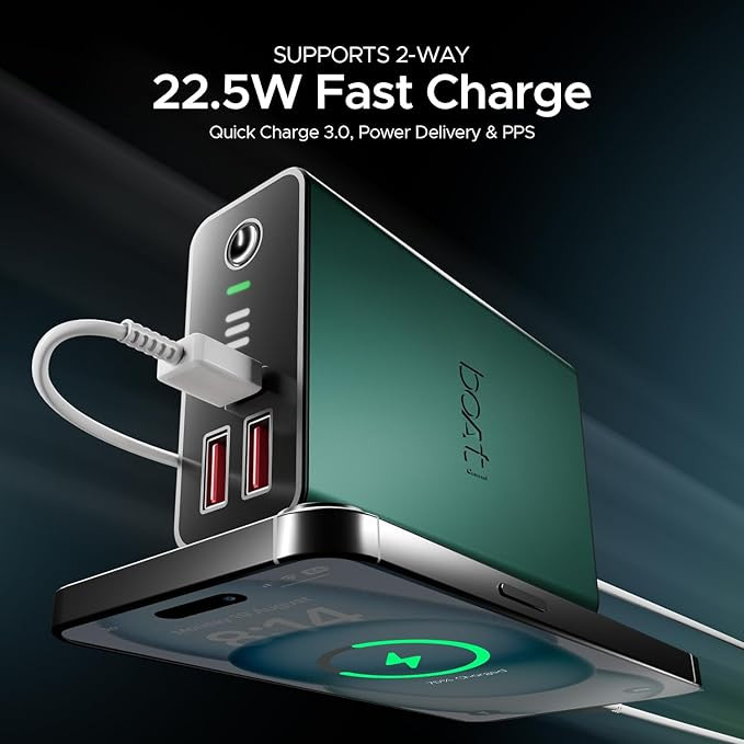 20000mAh Capacity: With a powerful 20000mAh capacity and smart power management, the boAt EnergyShroom PB400 Pro Power bank can charge your devices when required, for continuous use.