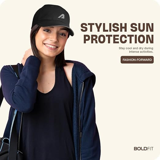 Boldfit Polyester Blend Head Caps For Men Unisex Mens Caps With Adjustable Strap In Summer For Men Caps Men For All Sports Cap For Men Women Cap Sports Caps For Men With Airholes - Black