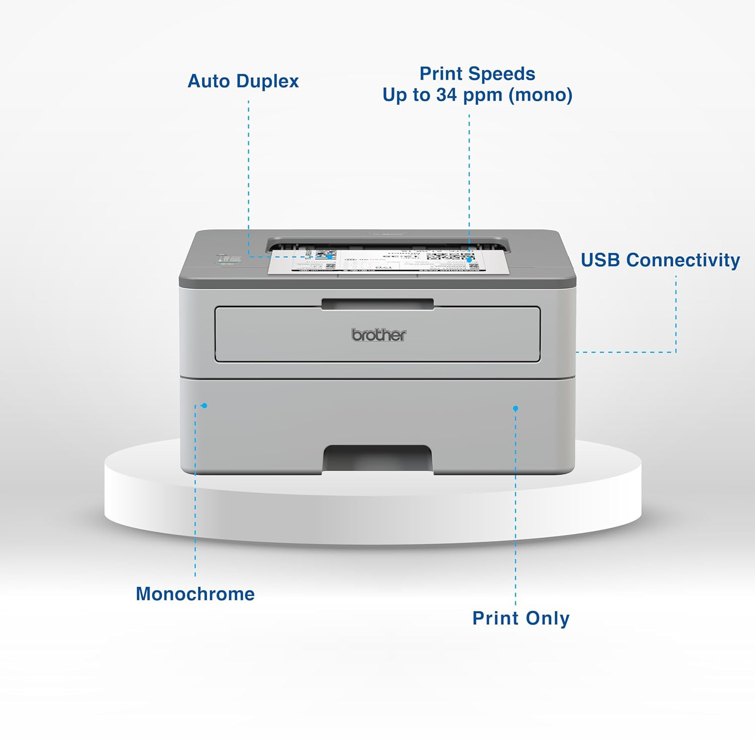 Brother HL-B2000D Automatic Duplex Laser Printer with 34 Pages Per Minute Print Speed, 32 MB Memory, Large 250 Sheet Paper Tray, USB Connectivity