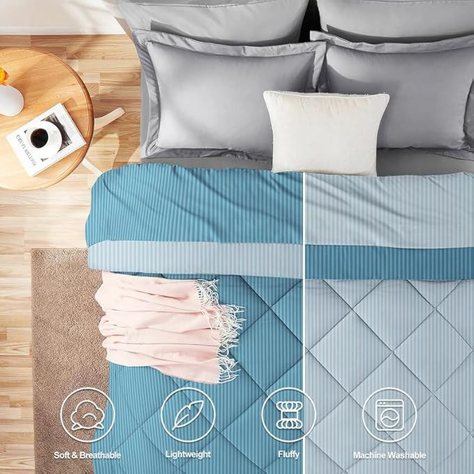 BSB HOME 220 GSM Microfiber Solid Satin Striped Comforter |Quit | Blanket Reversible Double Tone for Double Bed | Washable | Hypoallergenic Skin Friendly (90 x 100 Inch, Light Blue)
