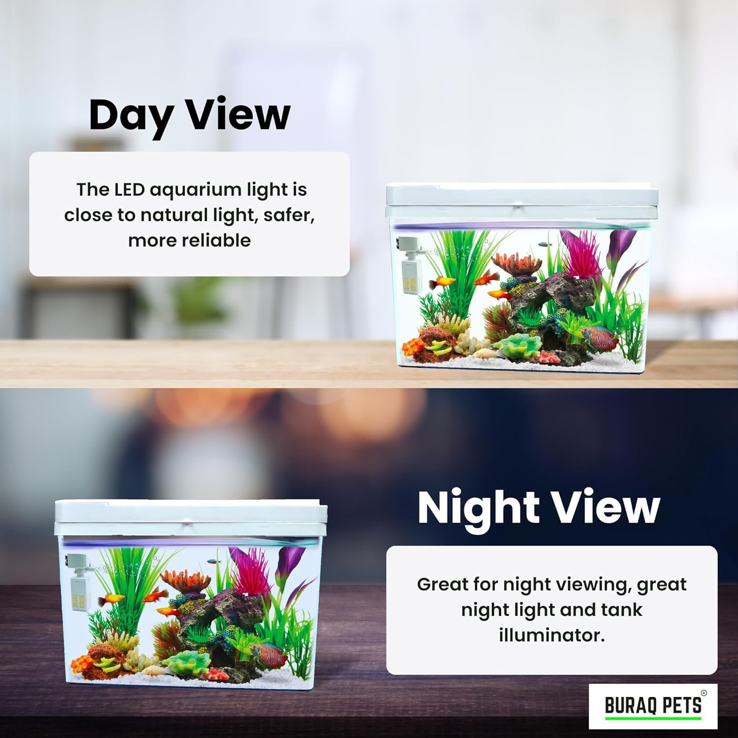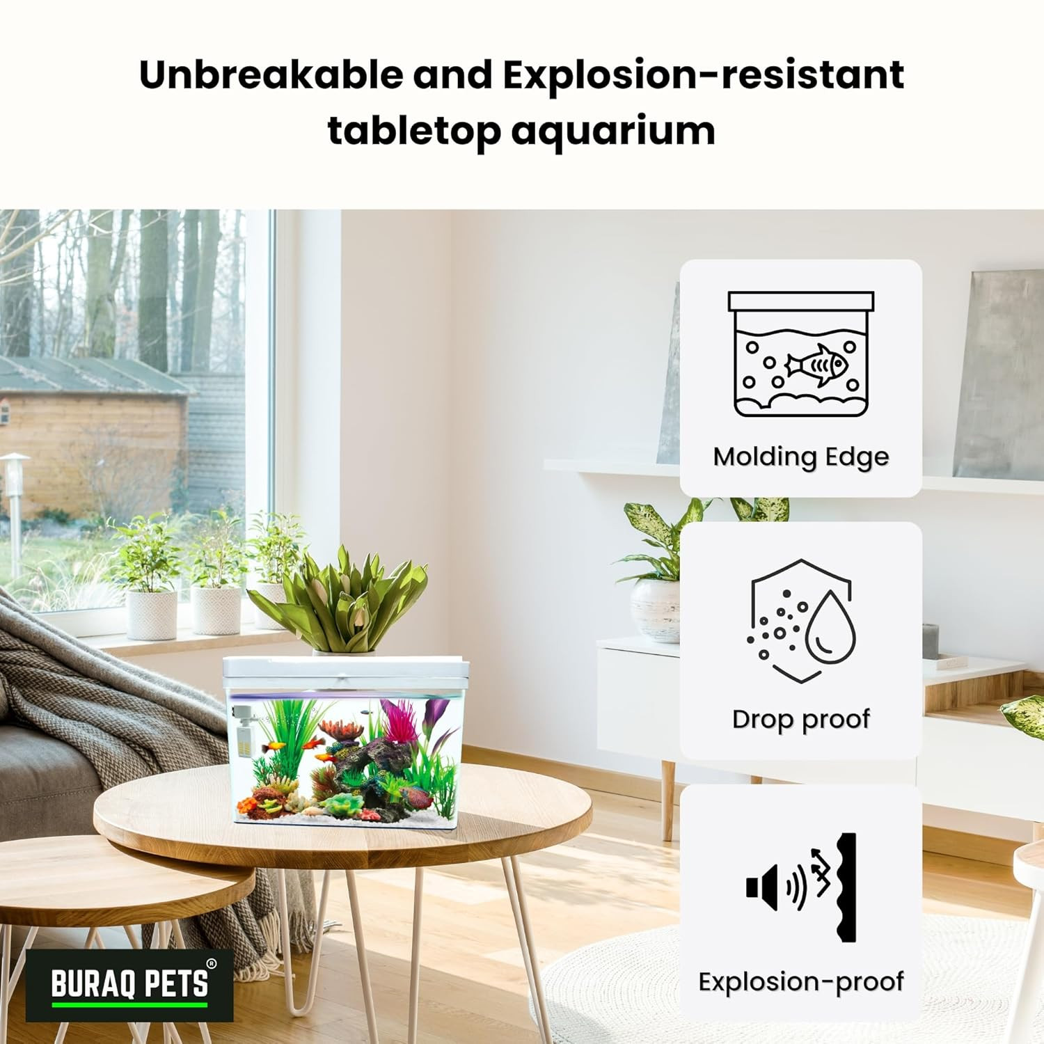Buraq 4K Transparency Moulded Fashion Aquarium Mini Fish Tank with Filter & Light, Polycarbonate Material, Suitable for Home, Living Room and Office (33" L x 21" W x 24" H Cm)